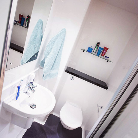 Our modern single rooms all include en-suite facilities, as well as a spacious wardrobe, comfortable study area and convenient storage. The kitchen and living area is shared by 5-7 other rooms.